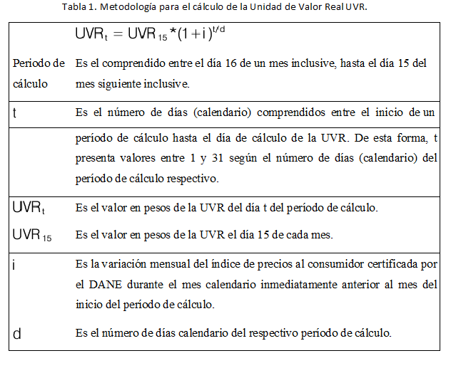 Una vez dadas estas aclaraciones, a continuación, se presenta la metodología para el cálculo de la Unidad de Valor Real UVR, en Colombia: